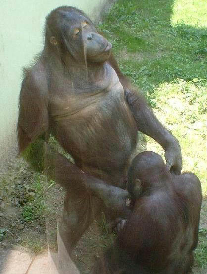 non è stato facile postarla sul mio blog. non perché mi sembrasse inopportuna per tumblr, più che altro mi sembra inopportuna per un luogo istituzionalmente sobrio come facebook. la posto perché la scimmia in molte cose si comporta come l’uomo ma gli somiglia di più così che quando parla il linguaggio dei sordomuti o quando dipinge. ecco, diciamo che in questo modo la sua dignità si salva