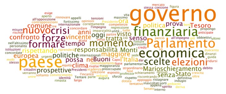 Tag cloud discorso di Giorgio Napolitano (fonte Wired)