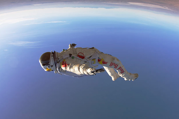 Skydiver Felix Baumgartner, pictured during a 25,000ft altitude test jump for Red Bull Stratos